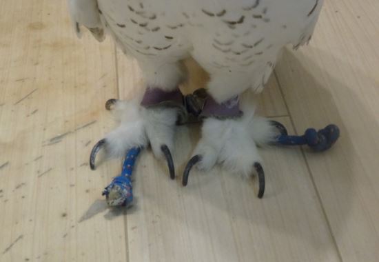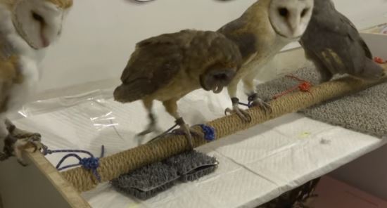 올빼미와 부엉이 4마리가 다리가 묶인 채 방치돼 있다. 이들은 푸드덕거리며 날아오르려다 실패하는 등 답답해하는 모습을 보였다. 일본 동물권리센터(ARC)