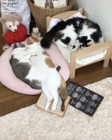 고양이들이 이렇게 잘 써주니 집사는 뿌듯하겠어요