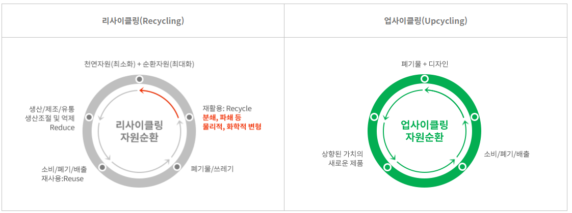 우리가 흔히 알고 있는 재활용(리사이클링)과 새활용(업사이클링)의 가장 큰 차이점은