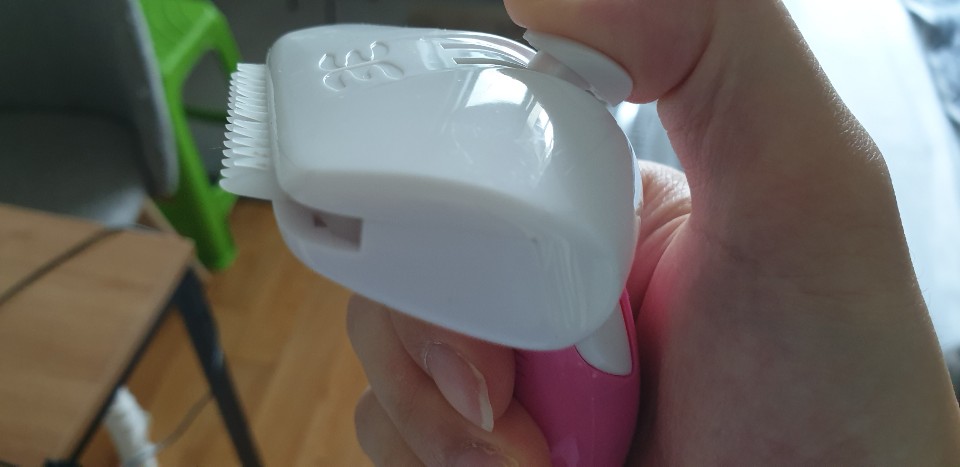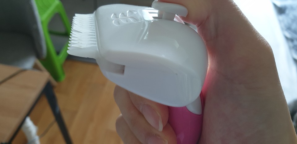 촘촘한 쪽은 브러쉬가 날카로워서 아이들이 싫어할까봐 세게 못하겠고... 뭔가 털을 뽑는다는 느낌이 들더라고요.