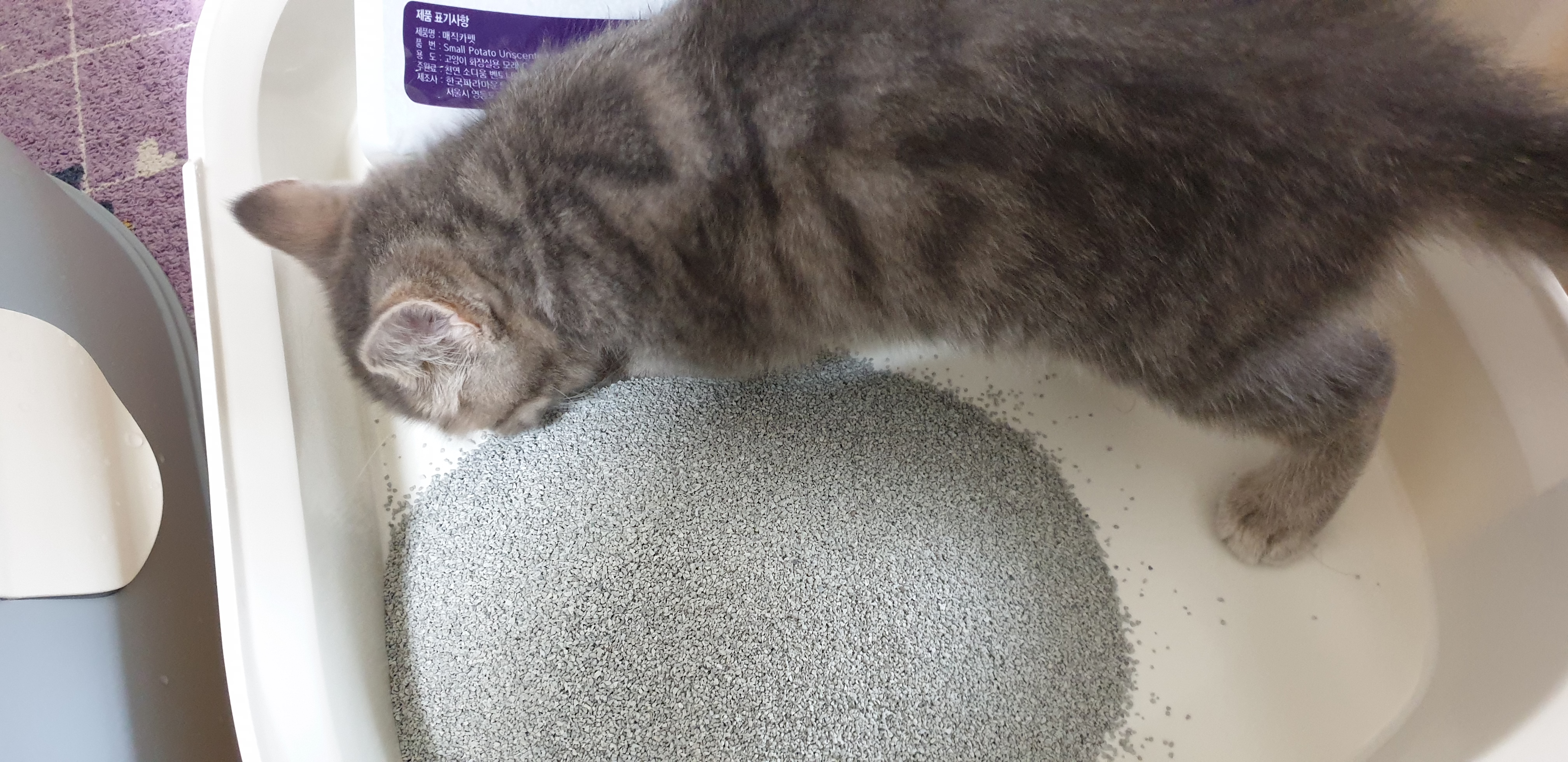 입자는 매직카펫쪽이 훨씬 고와서 고양이들이 모래장난하는 걸 더 좋아했는데,