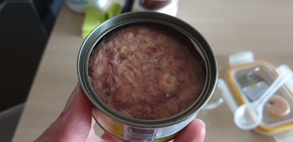 제가 개봉한 캔은 질감은 무스타입은 아니고 약간 살코기가 결이 남아있는 그런 제형이었어요.