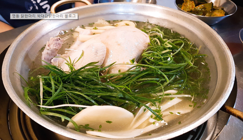 맑고 깔끔한 국물이 특징인 닭한마리 칼국수는